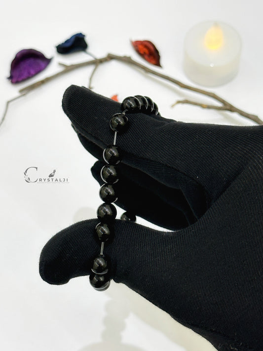 Black Obsidian Crystal Bracelet | (Against Negative Energies & Unlucky Thoughts) | Stylish Charm Stone Bracelet for Men & Women With 8MM Beads
